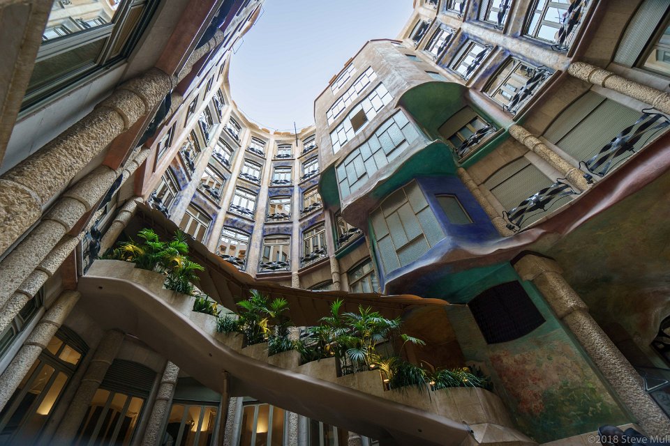 9 Barcelona - Casa Mila - Provenca Courtyard Casa Mila, popularly known as La Pedrera designed by architect Antoni Gaudí, built between 1906 and 1912. |