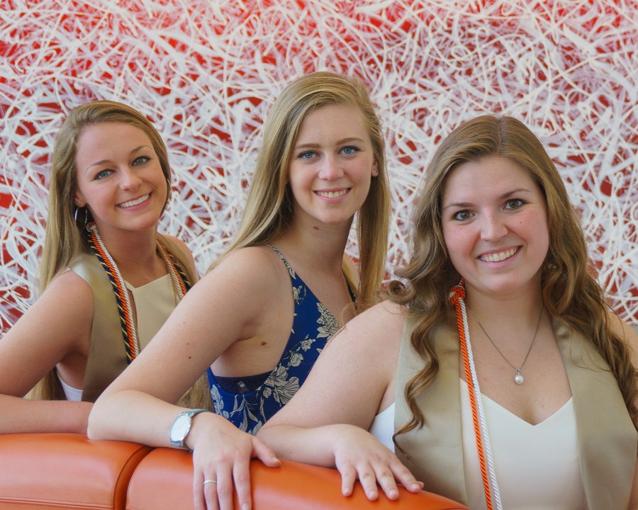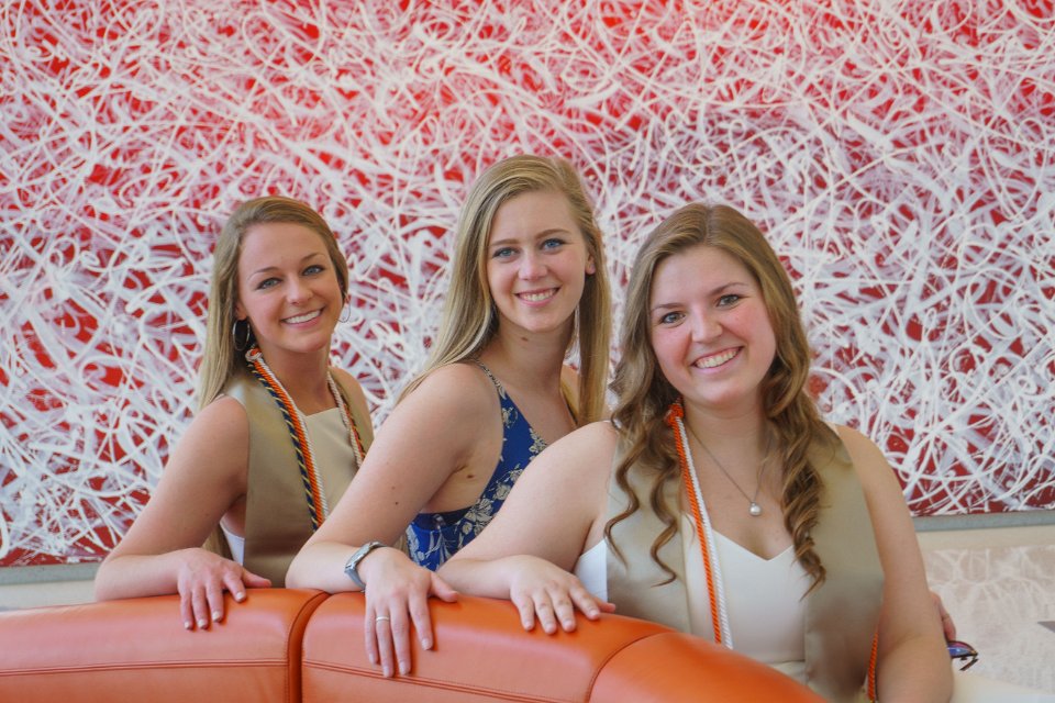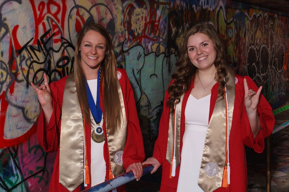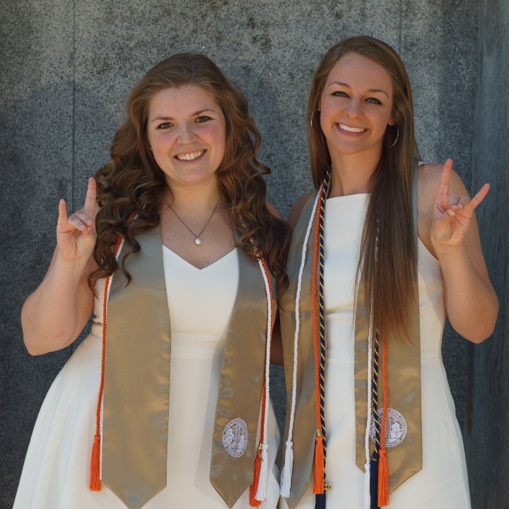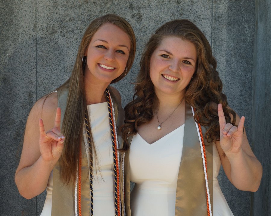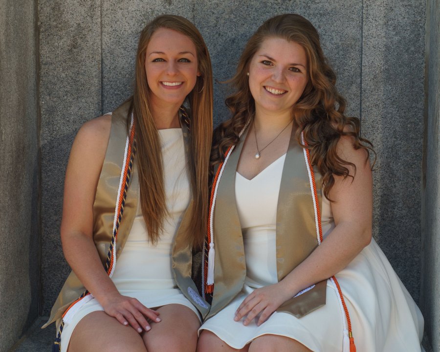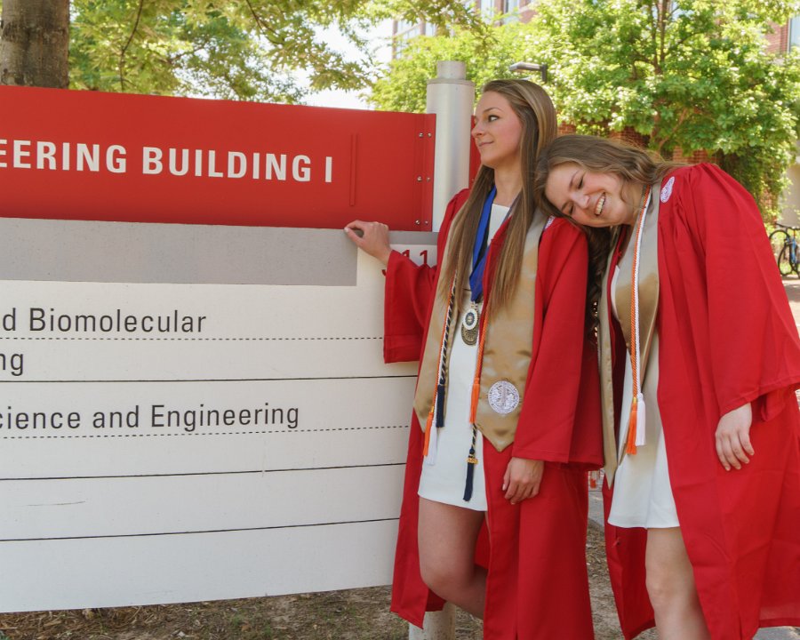 Lainey & Lizzy with Engineering I building sign
