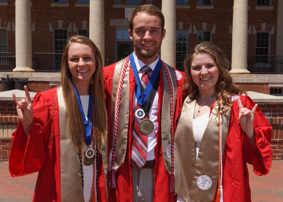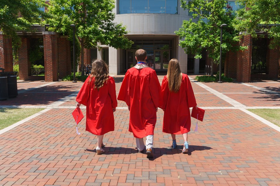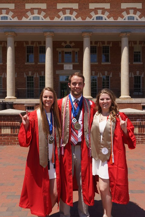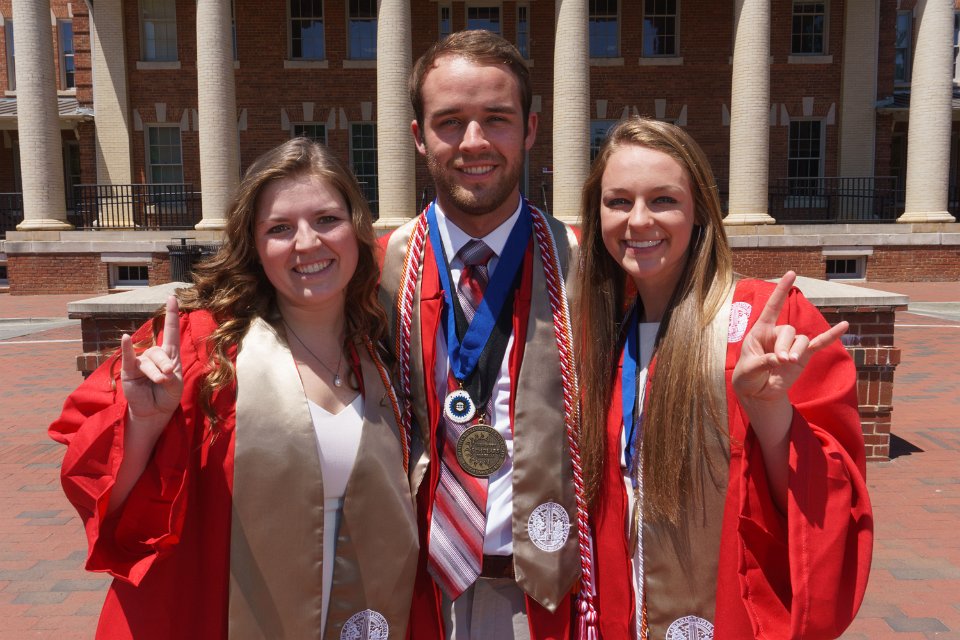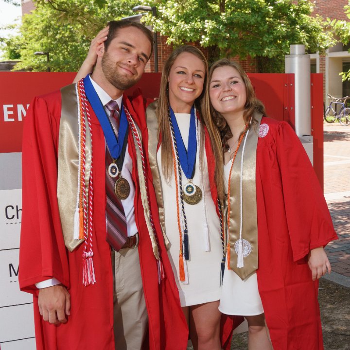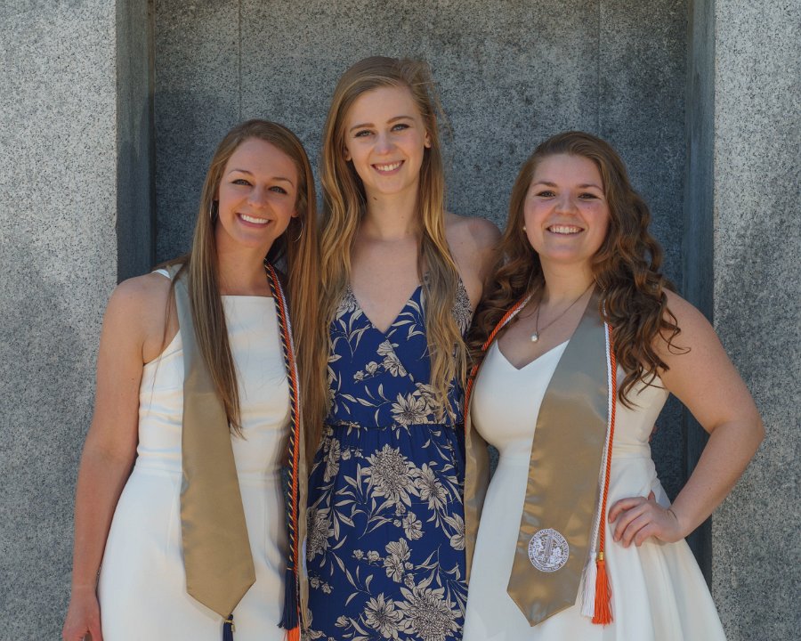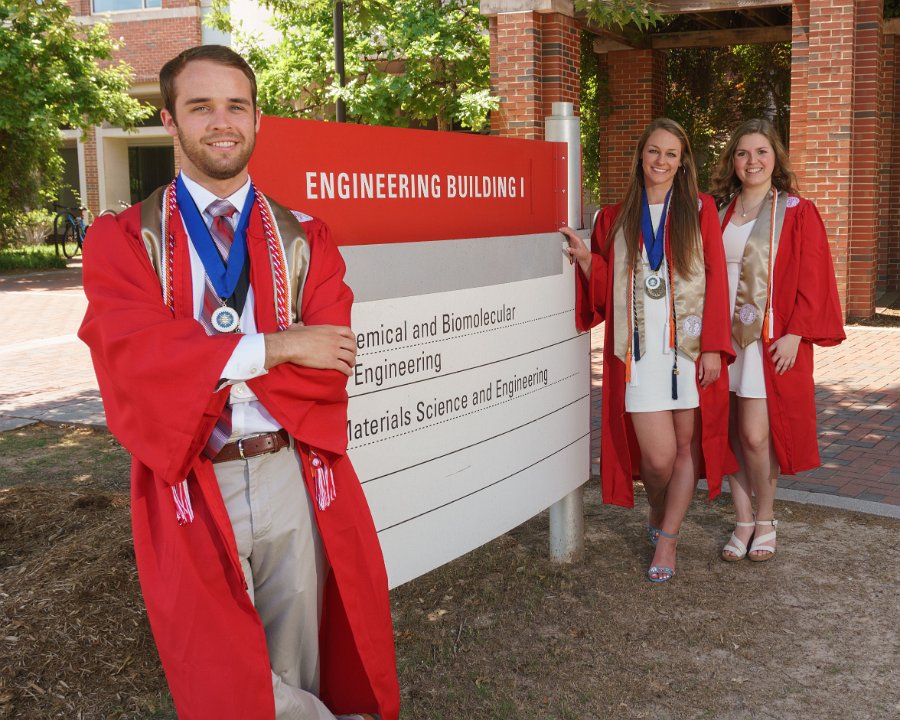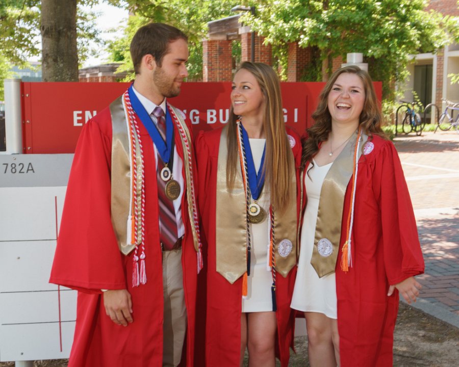 Sean & Lainey & Lizzy with Engineering I building sign