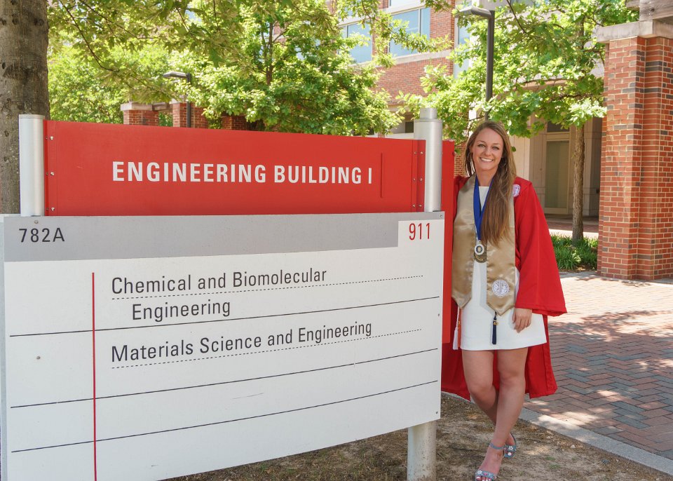 Lizzy with Engineering I building sign