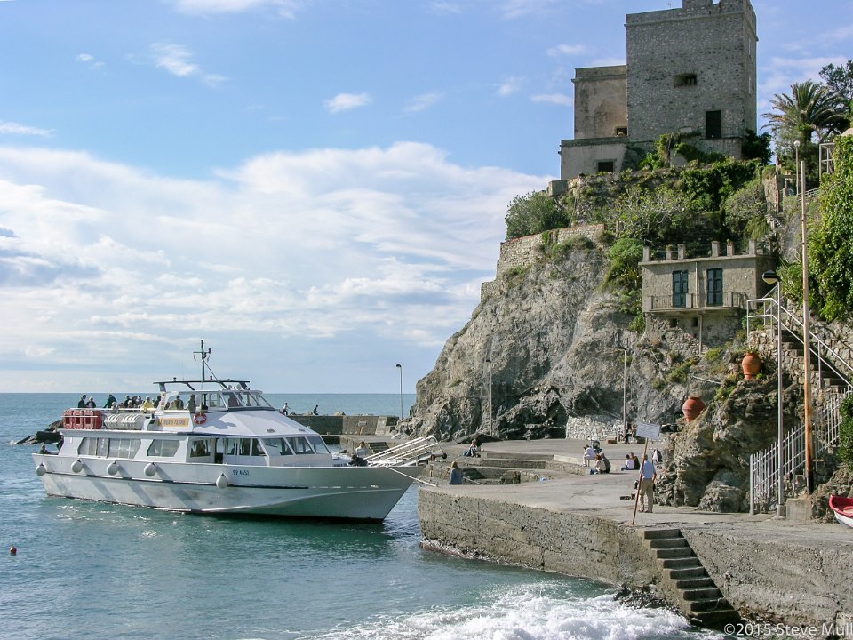 Tour boat at dock in Monterosso Italy