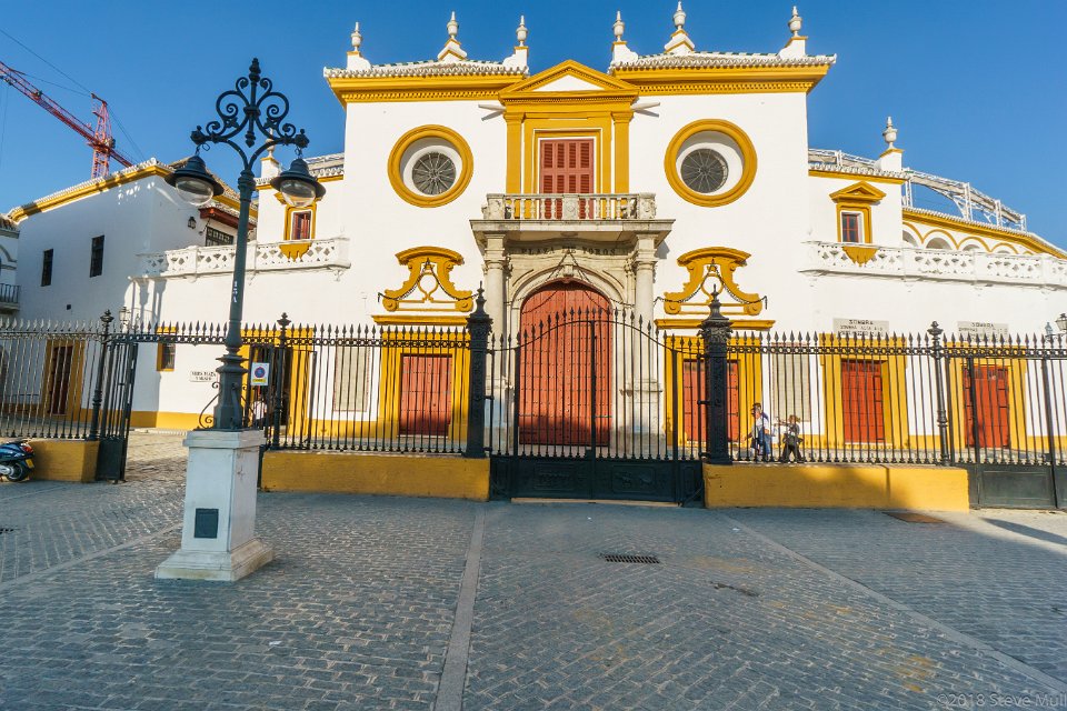 1Sevilla - Grand Royal Bullring Plaza de Toros de la Real Maestranza de Caballería de Sevilla. Grand royal bullring dating to 1761, still used for bullfights, plus museum of bullfighting art.