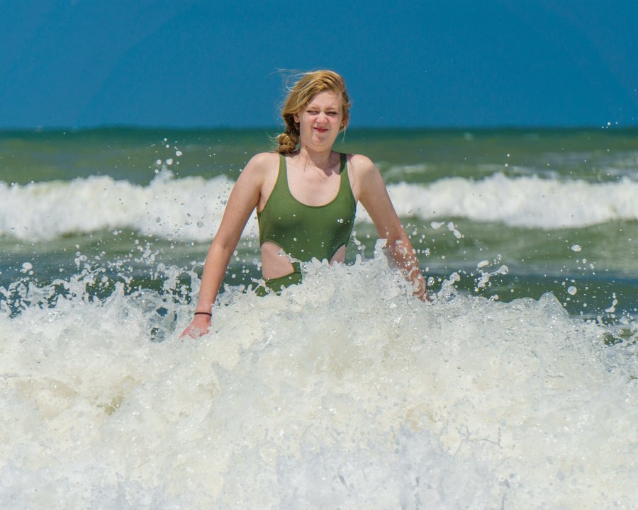 97The Unexpected Wave St. Augustiner, Vilano Beach Alison caught by unexpectedly strong wave.